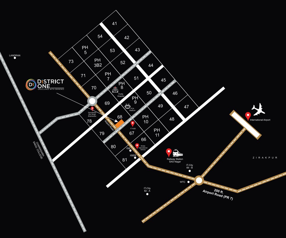 From spacious apartments and premium plots to modern retail and office spaces, District One brings everything under one address. With top-class amenities, wide green landscapes, and easy access to Chandigarh International Airport, IT hubs, educational institutions, and healthcare facilities, it stands out as a landmark project in the Tricity region.