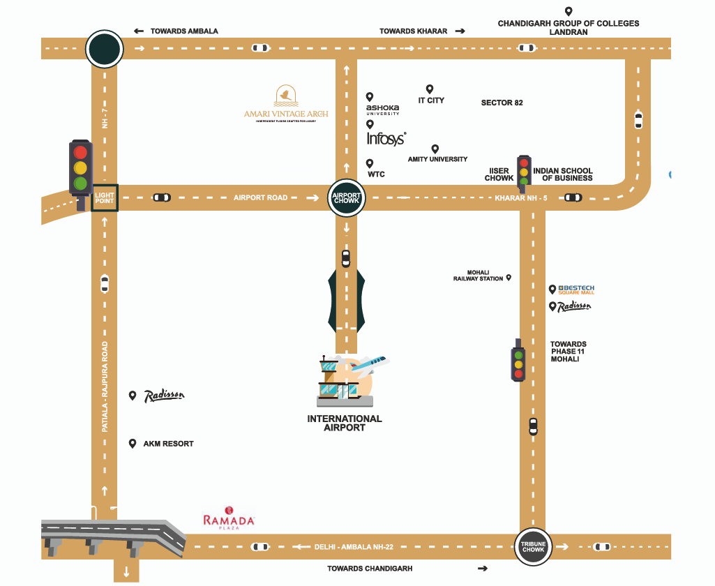 Strategically located, Amari Vintage Mohali boasts excellent connectivity to Chandigarh and other key areas. Proximity to educational institutions, hospitals, shopping malls, and entertainment hubs ensures a lifestyle of convenience and accessibility.