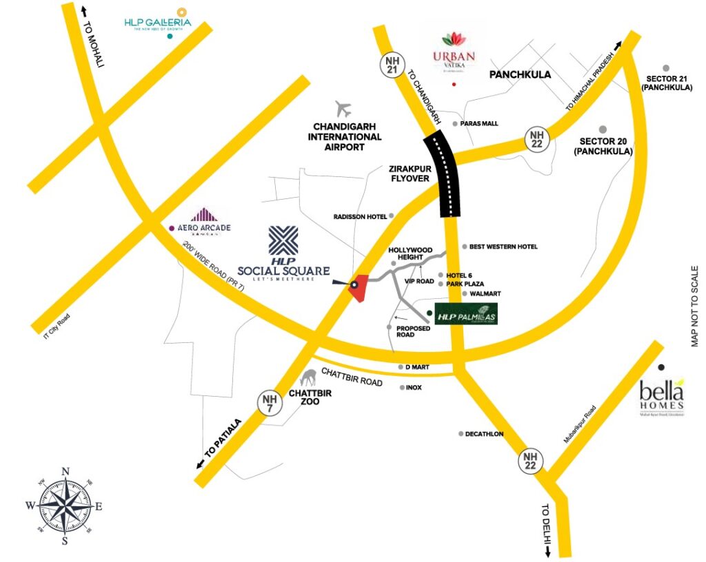 Positioned on the high-traffic Patiala Road Zirakpur, HLP Social Square enjoys excellent connectivity to Chandigarh, Panchkula, and Mohali. This advantageous location ensures high visibility and footfall, making it one of the top-rated commercial properties in Zirakpur. Features like ample parking, advanced security systems, high-speed elevators, and sustainable infrastructure further enhance its appeal.